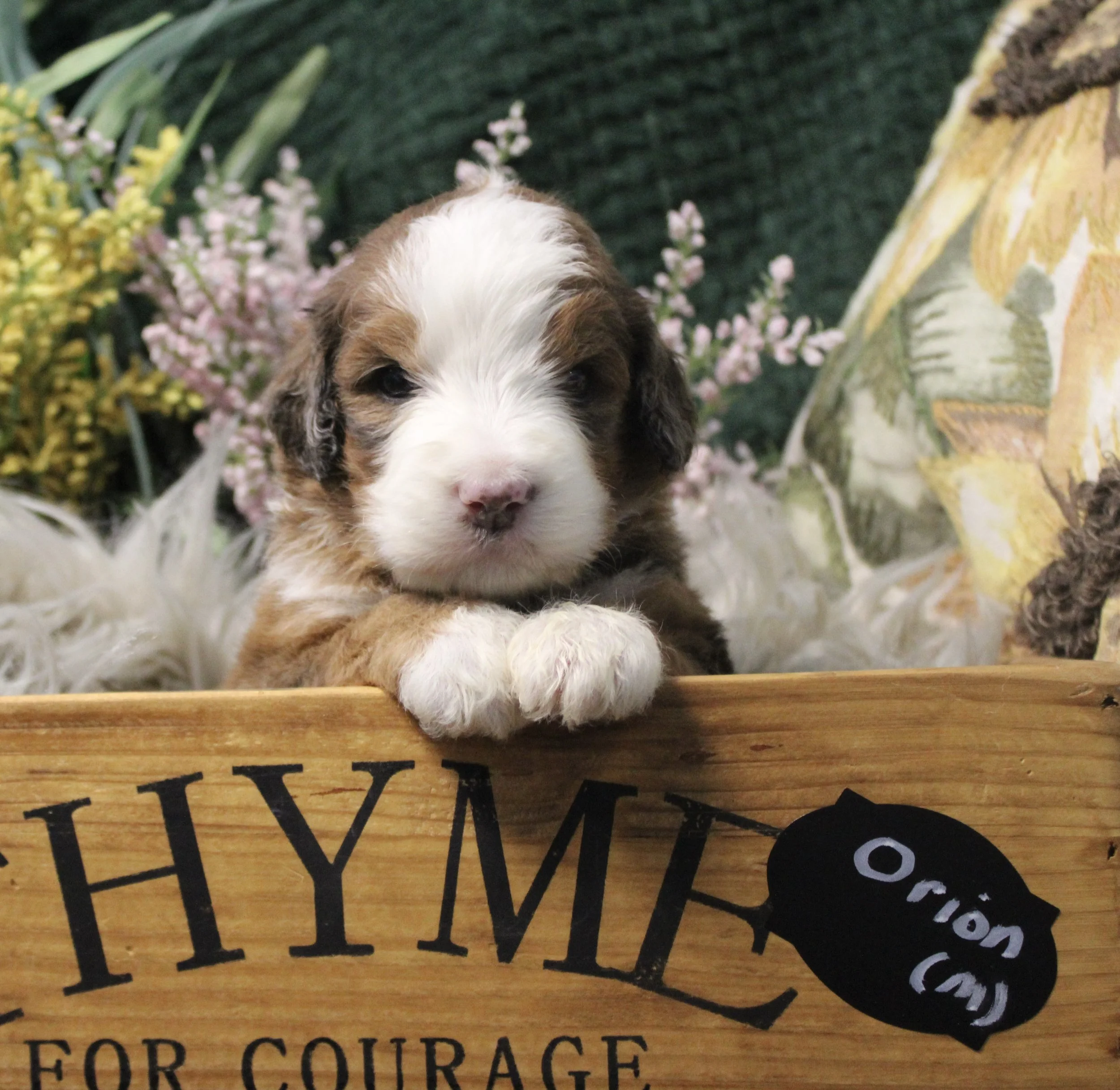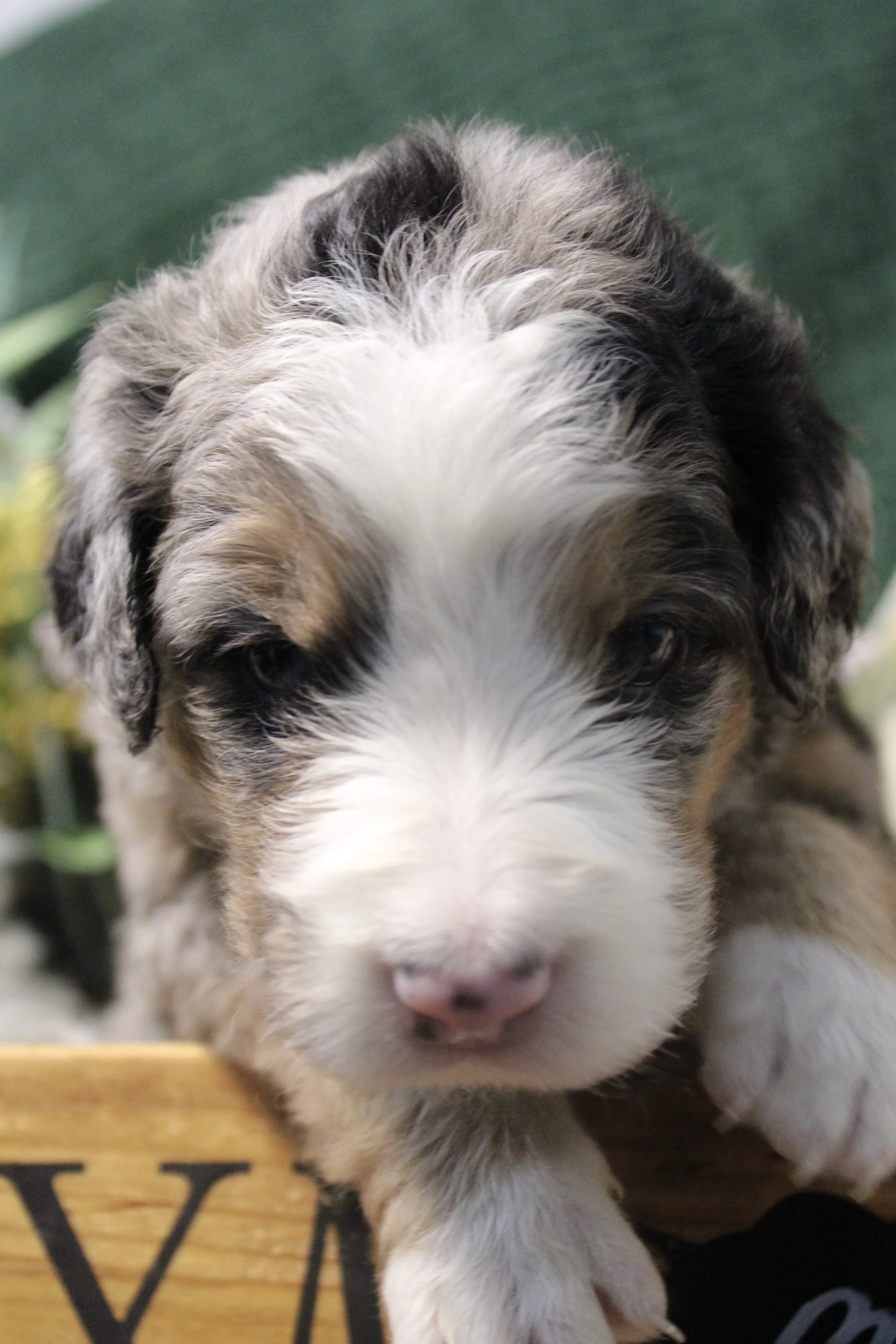 AVAILABLE Olive’s Australian Saint Bernedoodle OREO (M) estimated size at maturity 55-65lbs go home date 2/8/26. Free delivery if within 4 hours of Keene NH