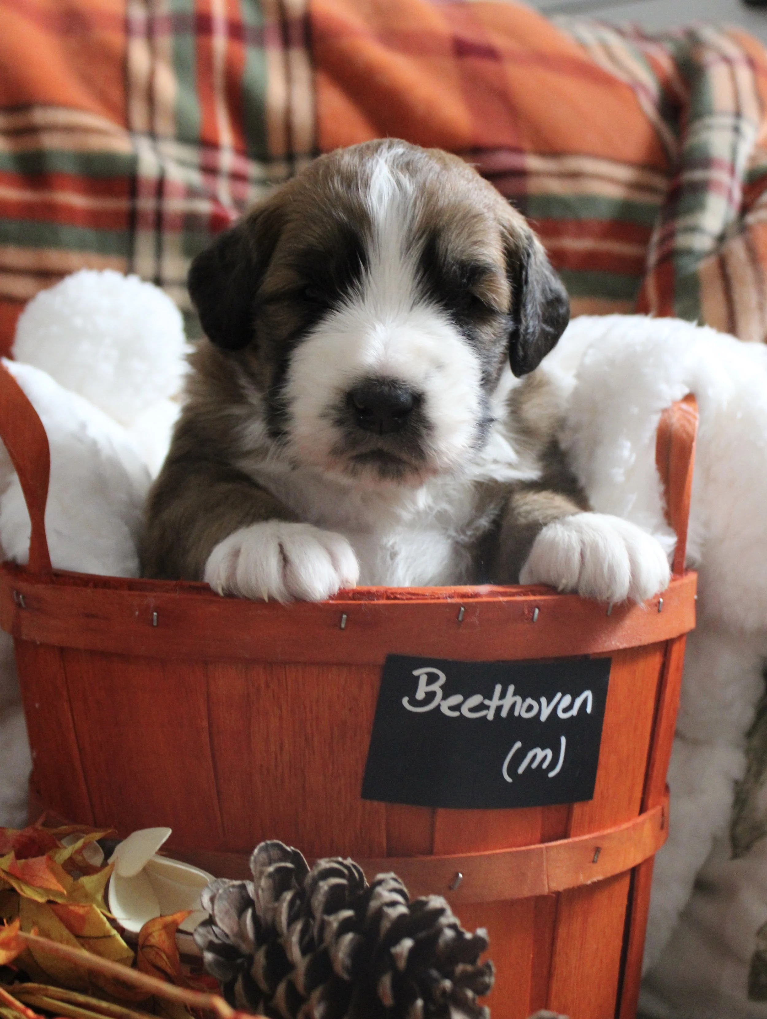 SOLD Blossom’s Australian Saint Bernedoodles BEETHOVEN (M) estimated size at maturity 70-80lbs go home date 12/3/25. Free delivery if within 4 hours of Keene NH.