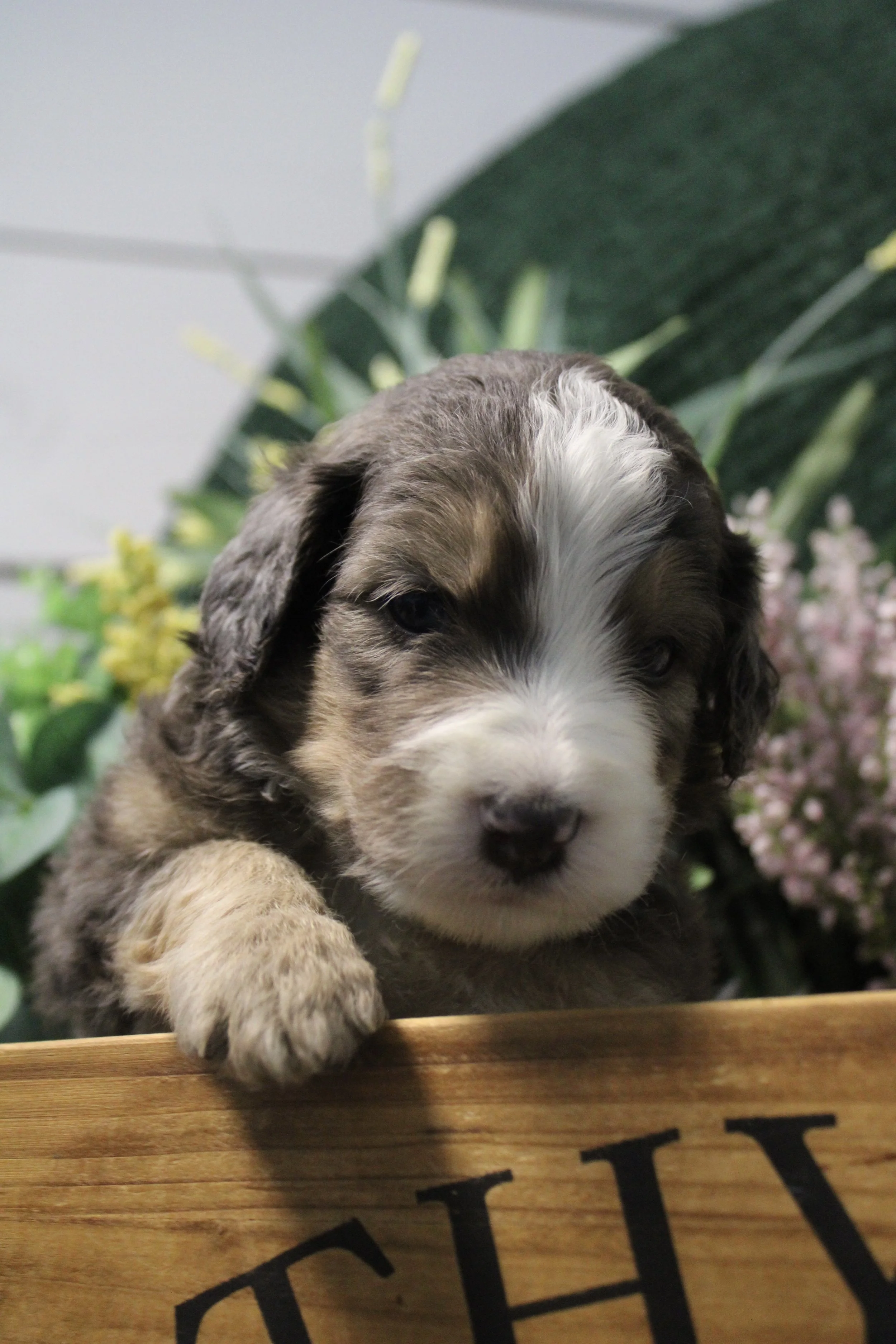 PENDING Latte’s Australian Bernedoodle MIA (F) estimated size at maturity 35-45lbs go home date 3/1/26. Free delivery if within 4 hours of Keene NH