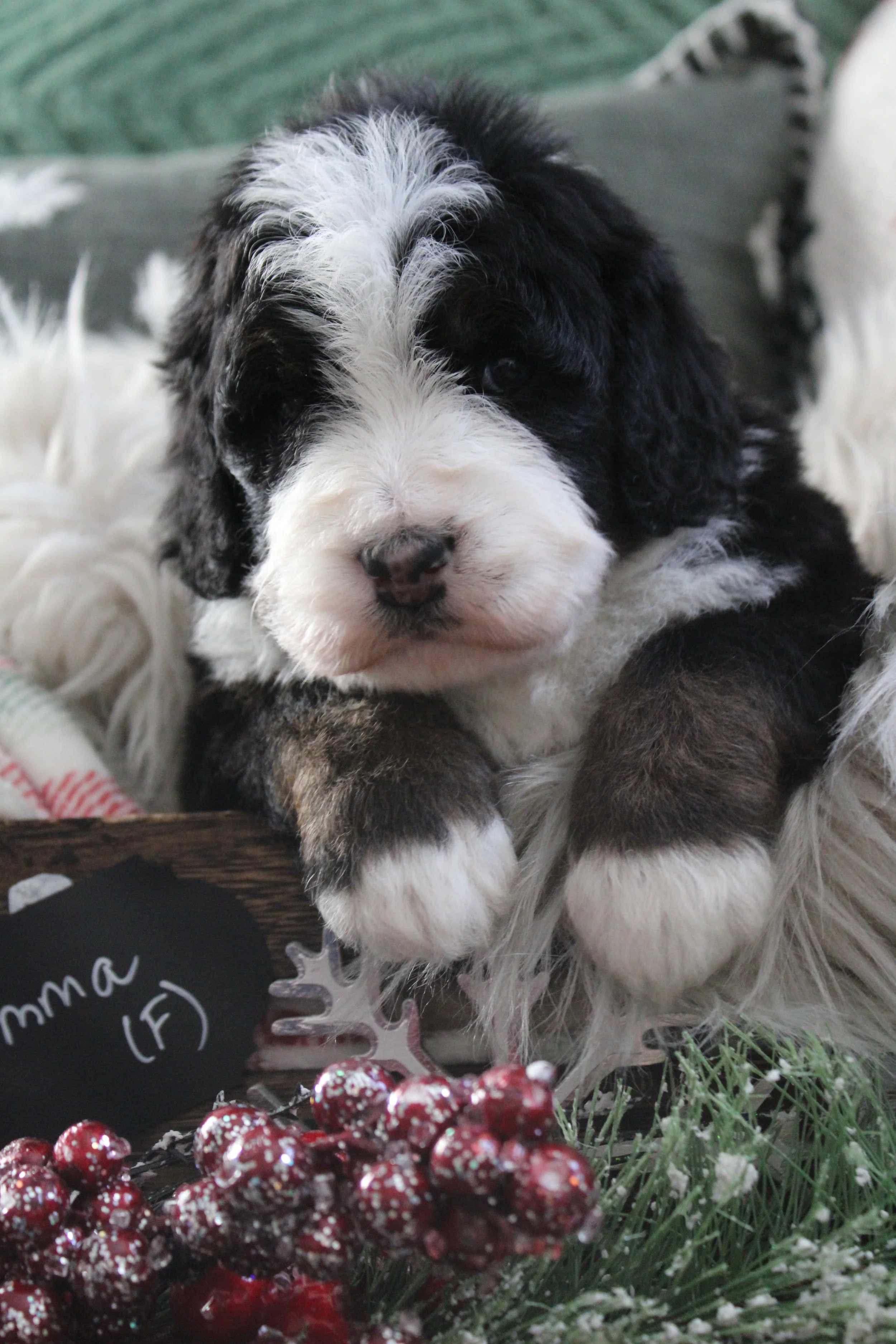 AVAILABLE Tessa’s Australian Bernedoodles EMMA (F) estimated size at maturity 45-55lbs go home date 1/6/26. Free delivery if within 4 hours of Keene NH