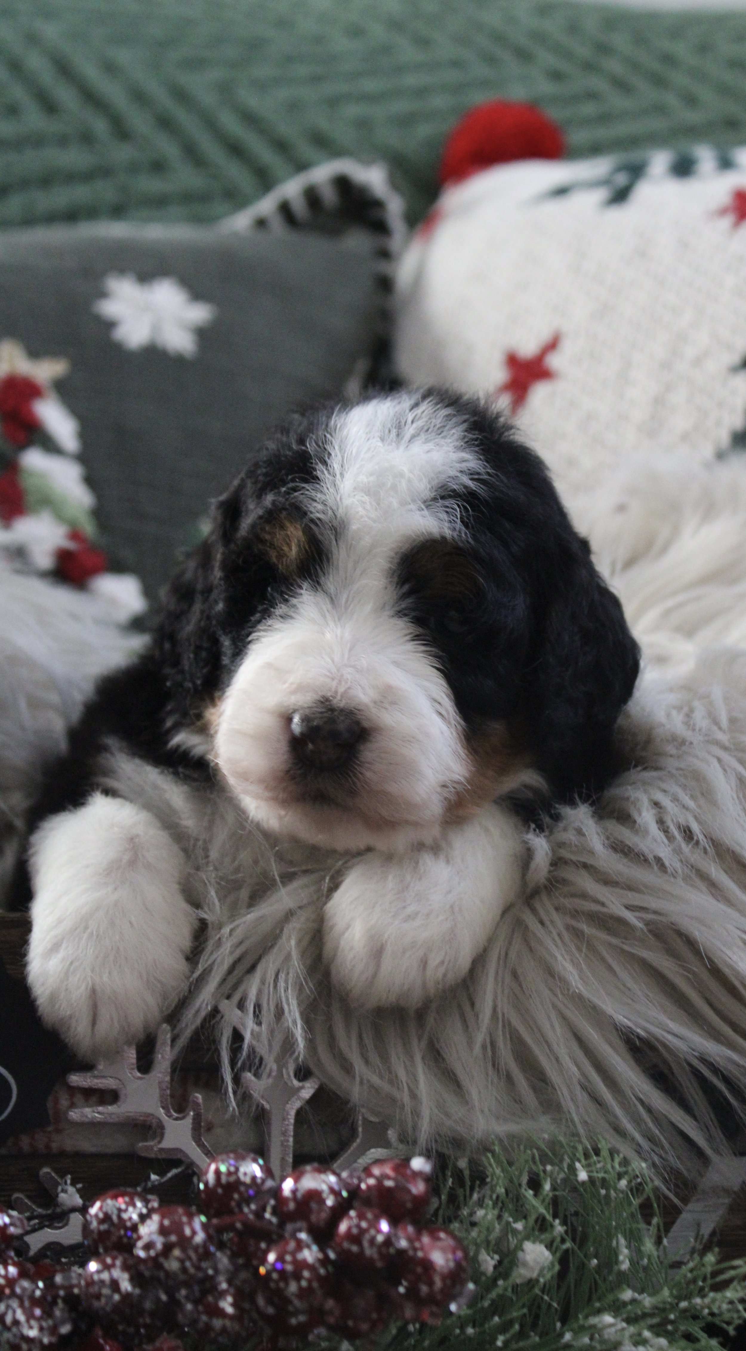 SOLD Jasmine’s Australian Bernedoodles GUS (M) estimated size at maturity 25-30lbs go home date 12/21/25. Free delivery if within 4 hours of Keene NH.
