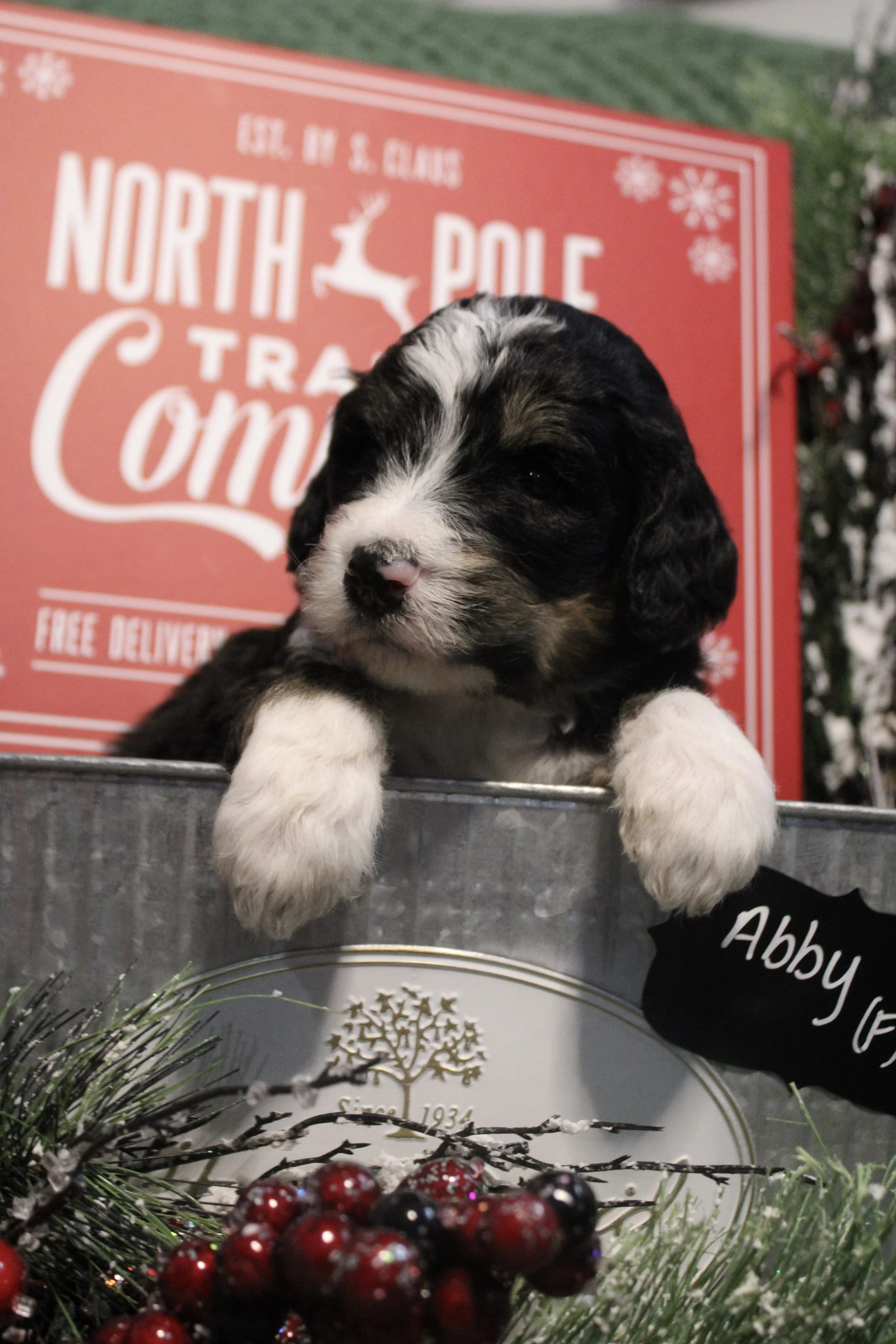 SOLD Sage’s Bernedoodles ABBY (F) estimated size at maturity 45-55lbs go home date 12/23/25. Free delivery if within 4 hours of Keene NH.