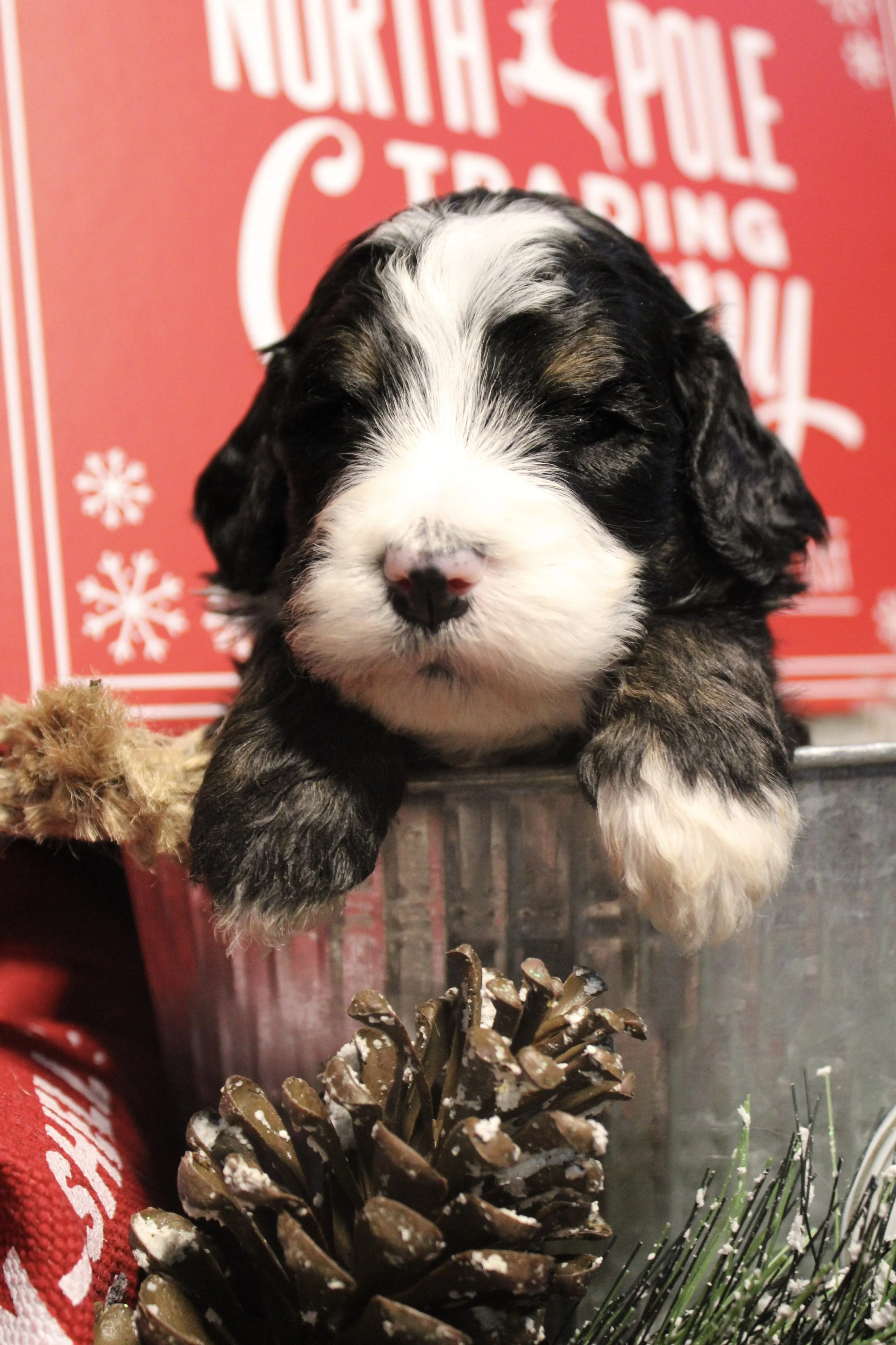 SOLD Sage’s Bernedoodles MILO (M) estimated size at maturity 45-55lbs go home date 12/23/25. Free delivery if within 4 hours of Keene NH.