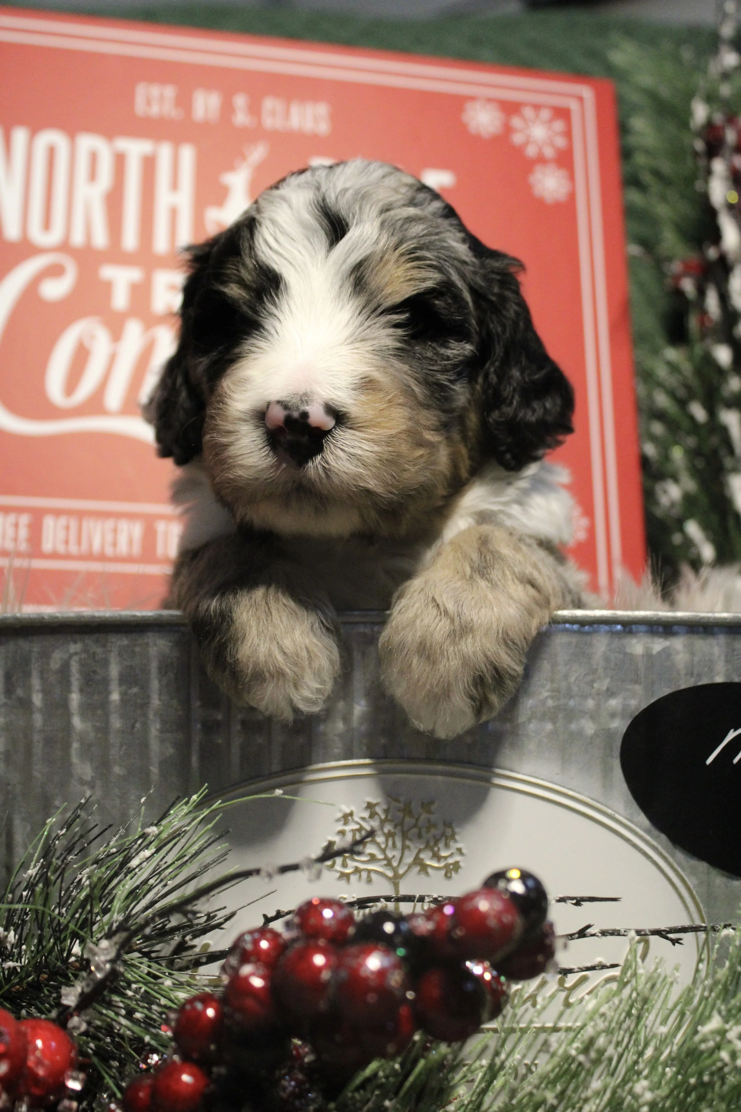 SOLD Sage’s Bernedoodles CHARLIE (M) estimated size at maturity 45-55lbs go home date 12/23/25. Free delivery if within 4 hours of Keene NH.