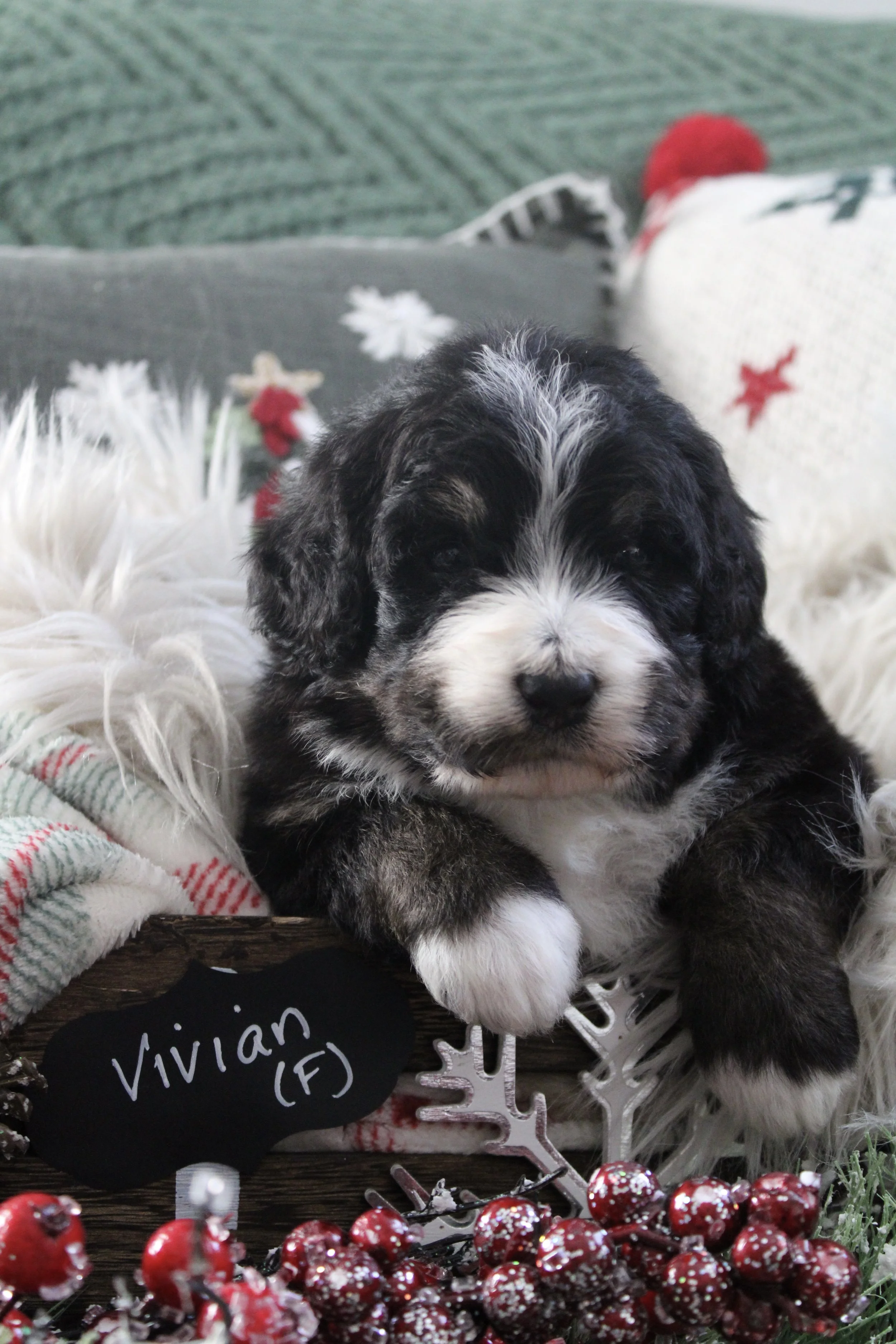 AVAILABLE Tessa’s Australian Bernedoodles VIVIAN (F) estimated size at maturity 45-55lbs go home date 1/6/26. Free delivery if within 4 hours of Keene NH