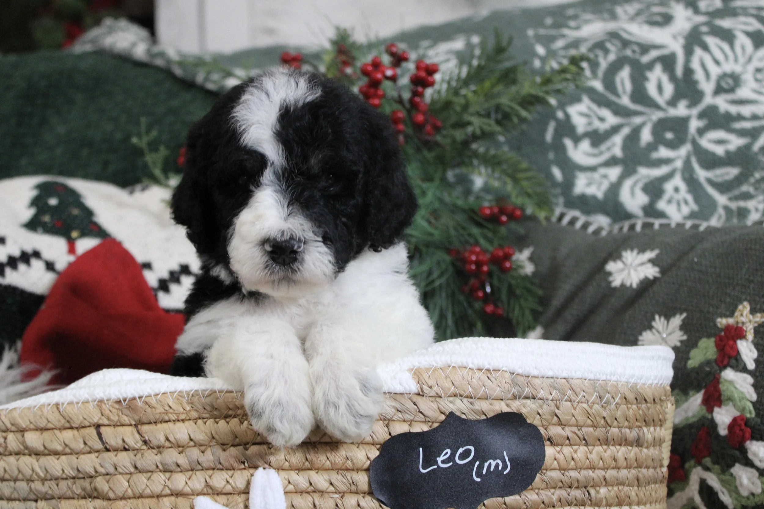 SOLD Pippi’s Australian Saint Bernedoodles AARON (M) estimated size at maturity 55-65lbs go home date 12/18/25. Free delivery if within 4 hours of Keene NH.