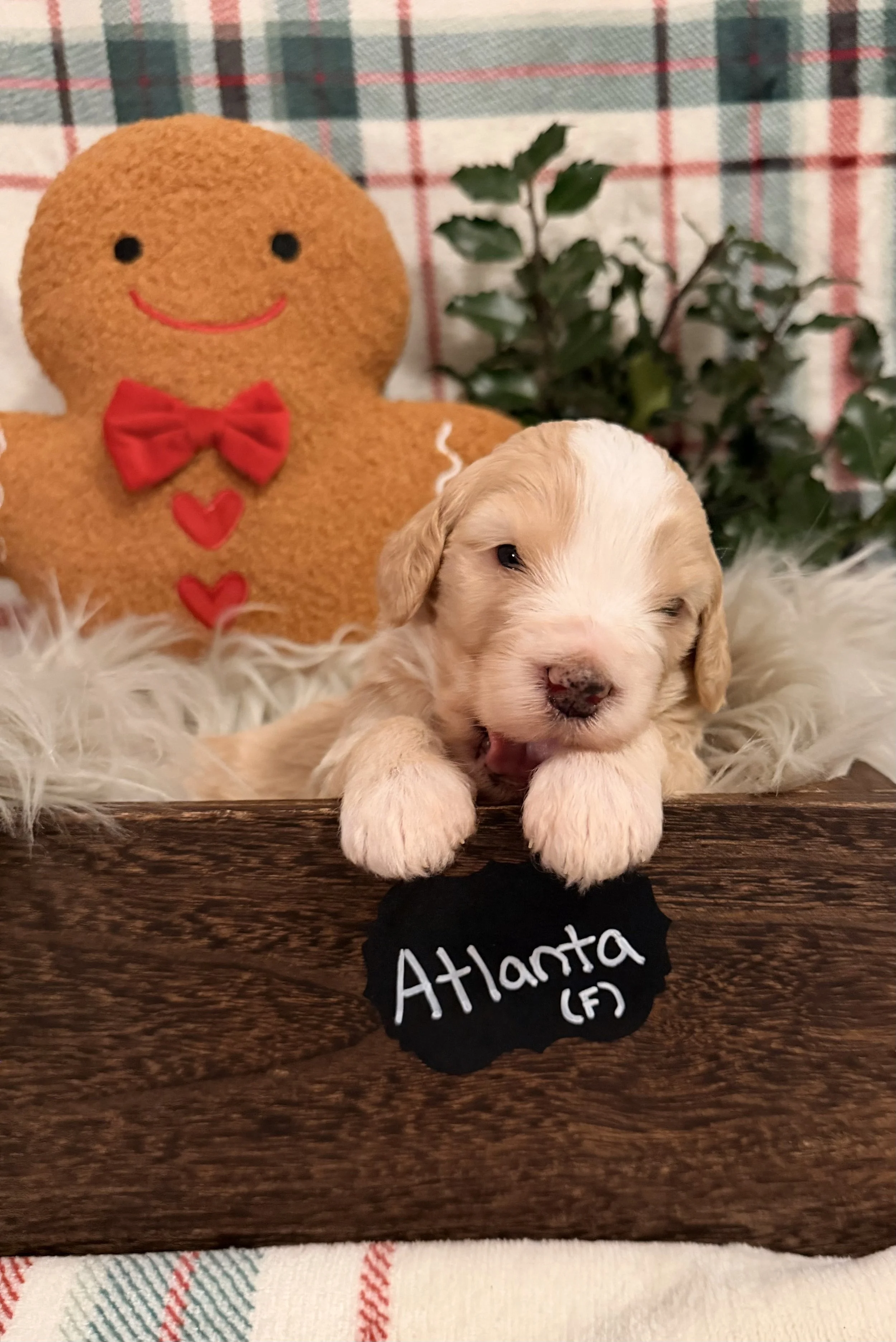 AVAILABLE Maggie’s Australian Saint Bernedoodles ATLANTA (F) estimated size at maturity 55-65lbs go home date 1/17/26. Free delivery if within 4 hours of Keene NH